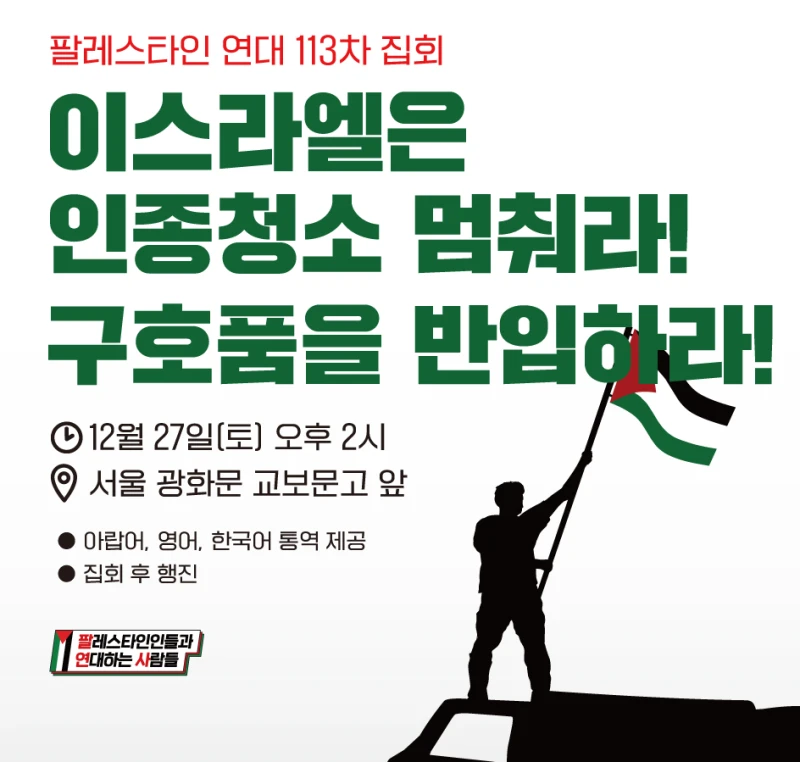 12월 13일 팔레스타인 연대 서울 집회와 행진: 휴전 ‘2단계’라지만 계속되는 학살·점령 규탄하다