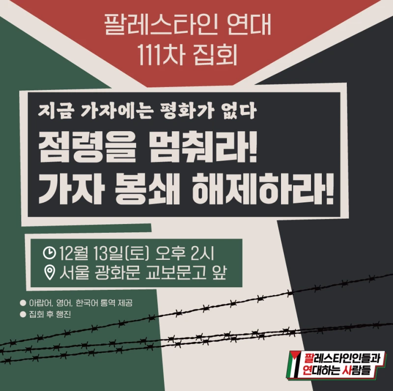 11월 29일 팔레스타인 연대 국제 행동의 날: “모든 것을 봉쇄하라“