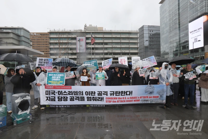 미국·이스라엘의 이란 공격에 대한 공분이 국제적으로 일고 세계 여러 나라에서 항의 행동이 벌어지는 가운데, 한국에서도 3월 2일(월) 정오…