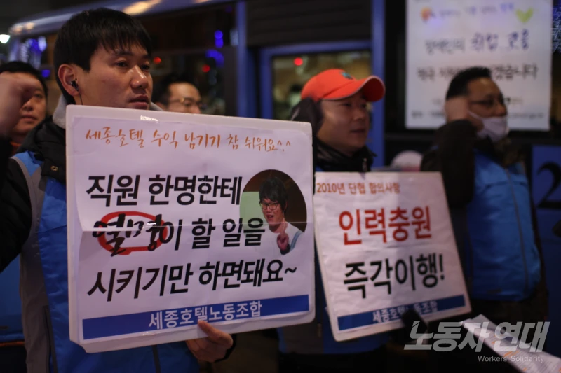 [세종호텔 결의대회] "전 직원이 단결 투쟁하자"