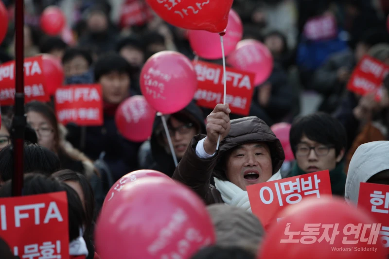 영하의 강추위에도 이어진 ‘한미FTA 무효’ 촛불