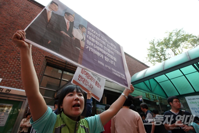 민주노동당 당대회에서 참여당 통합안 부결