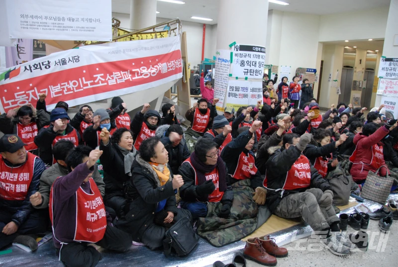 [청소노동자투쟁] 홍익대학교 비정규직 노동자들의 점거 투쟁