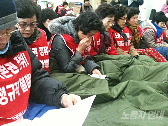 [청소노동자투쟁] 점거농성14일차, 날씨는 추워도 연대로 마음은 따뜻.