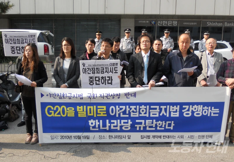 G20을 빌미로 야간집회금지법 강행하는 한나라당 규탄 기자회견
