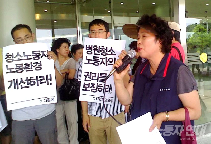 고려대 병원 청소 노동자들의 노동환경 개선을 요구하는 노동자-학생 공동 기자회견