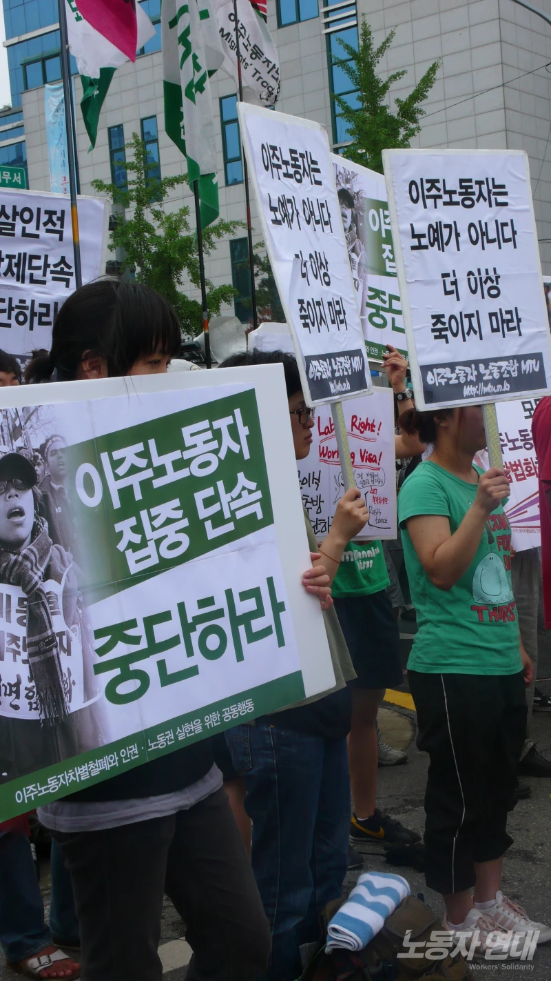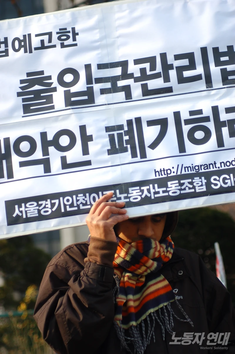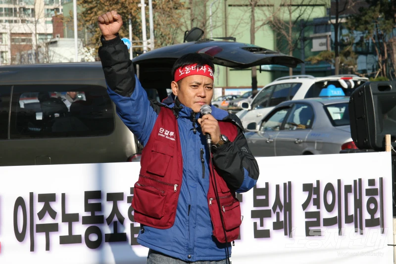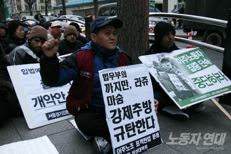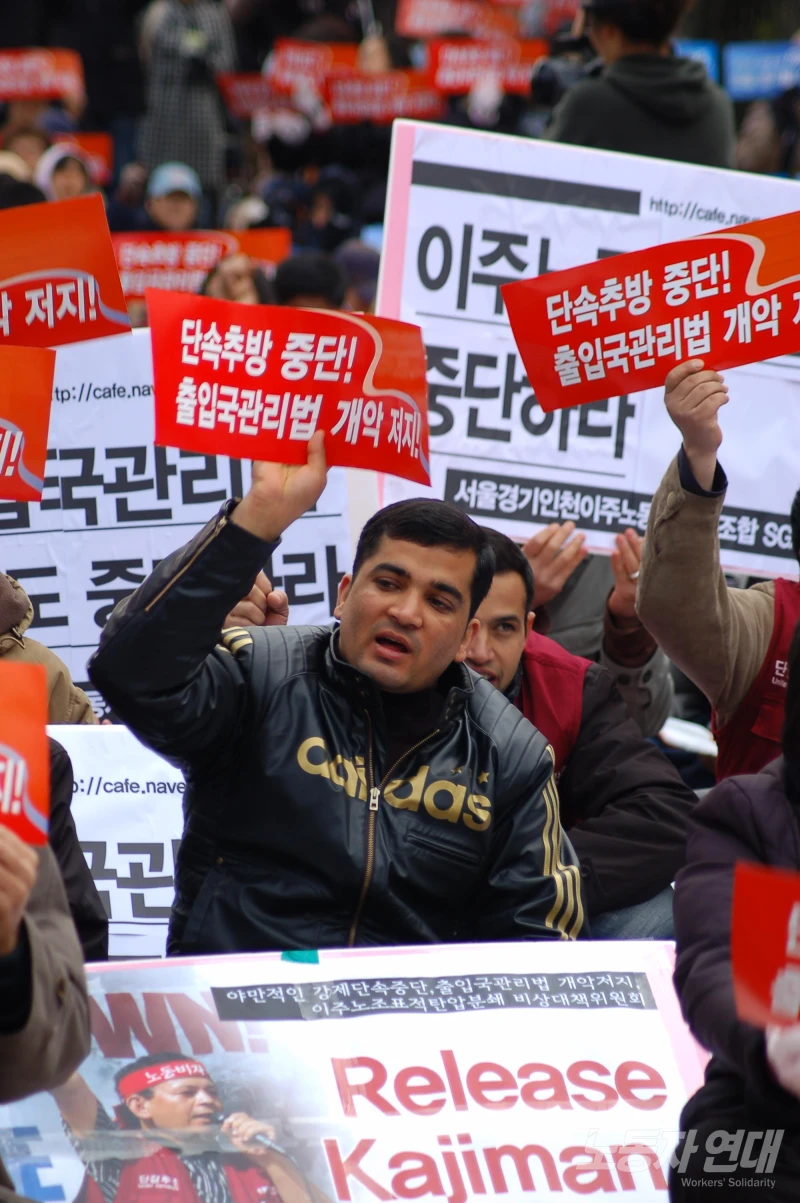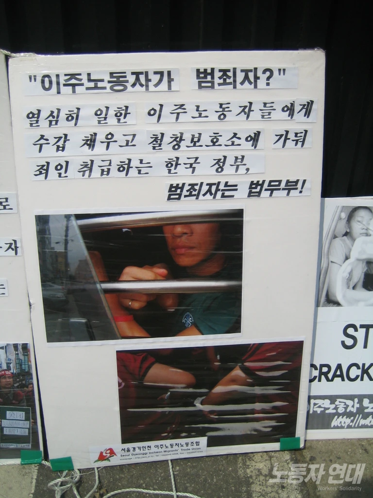 이주노조 지도자 3인 석방! 이주노조 탄압 분쇄! 서울 출입국 사무소 앞 규탄집회