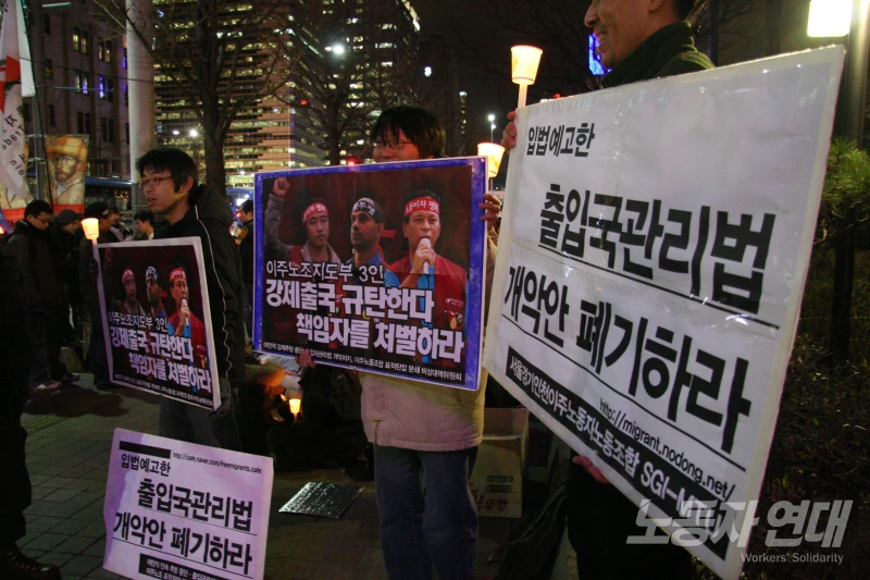 이주노조 지도부 강제출국 규탄 출입국관리법 개악 저지 촛불문화제