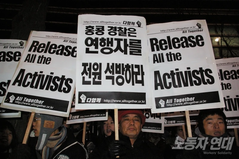 WTO 규탄시위자에 대한 홍콩경찰의 폭력진압항의와 연행자 석방을 위한 기자회견
