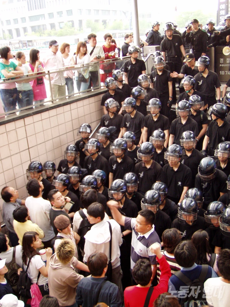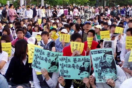 2005년 내신등급제에 반대하고 두발 단속에 항의하는 청소년들의 집회