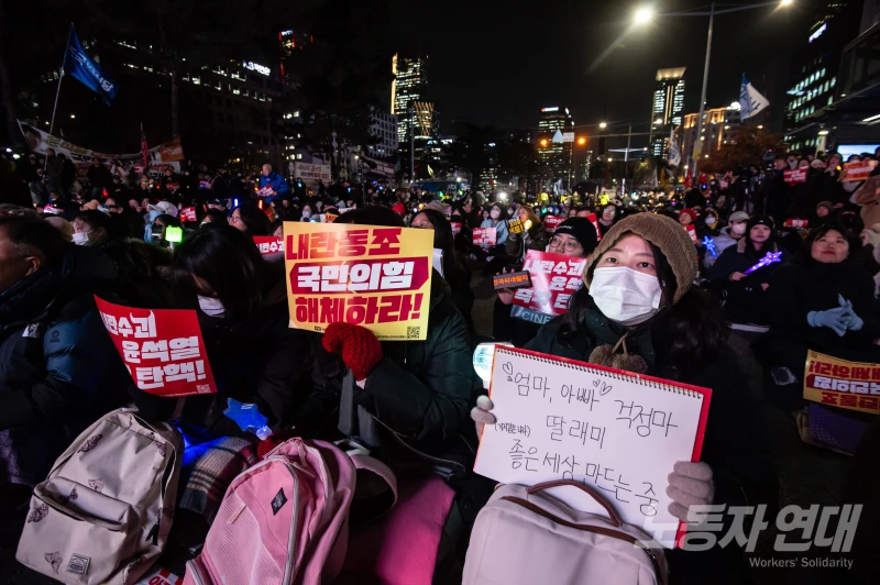 윤석열 계엄 저지 둘째 날 집회·행진: “계엄을 막은 우리 힘으로 윤석열 끌어내리자”