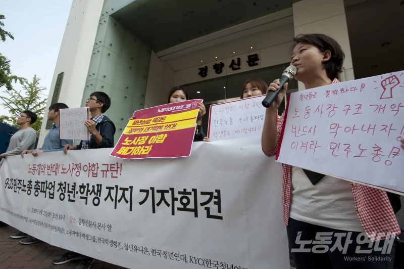 청년·학생들, " 민주노총 9.23 총파업을 지지합니다"