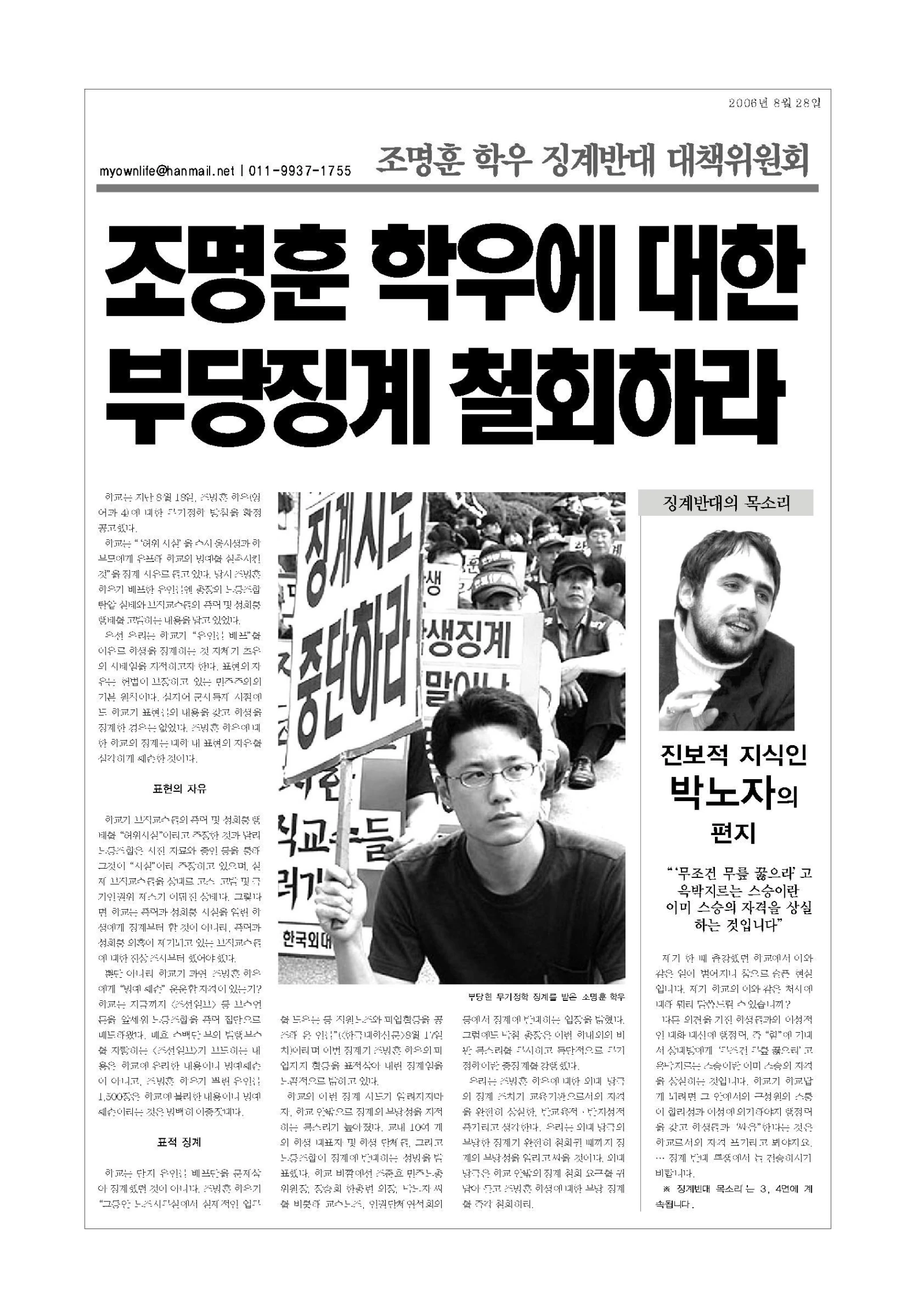 외국어대 조명훈 학우에 대한 징계방침 철회하라