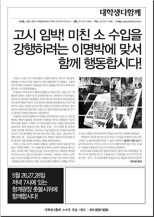 고시 임박! 미친 소 수입을 강행하려는 이명박에 맞서 함께 행동합시다!