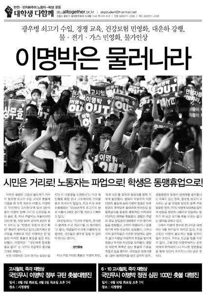 대학생다함께 리플릿-이명박은 물러나라(2008년 6월 2일)