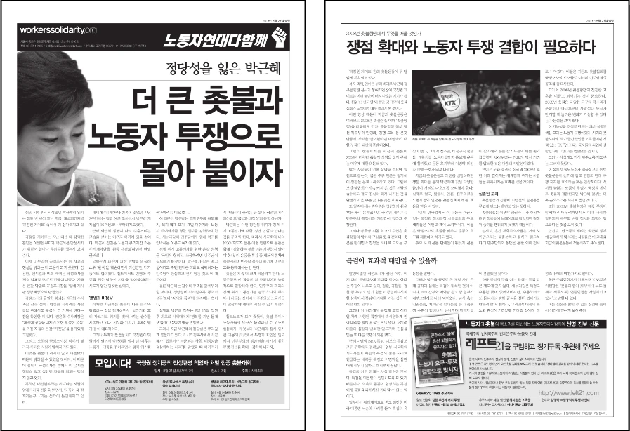 더 큰 촛불과 노동자 투쟁으로 몰아 붙이자