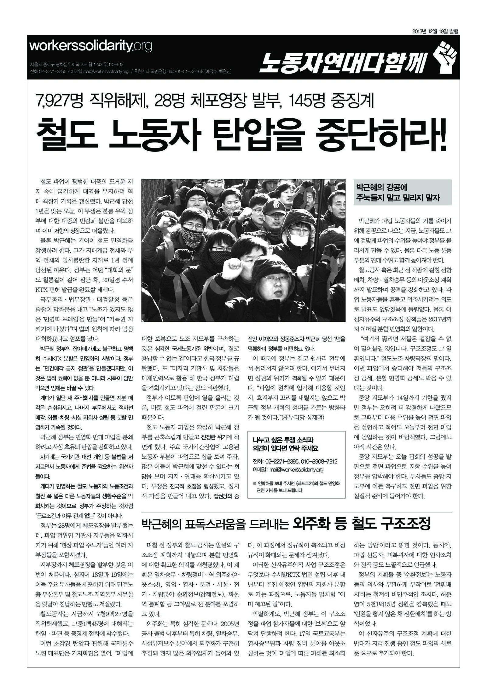 철도 노동자 탄압을 중단하라!