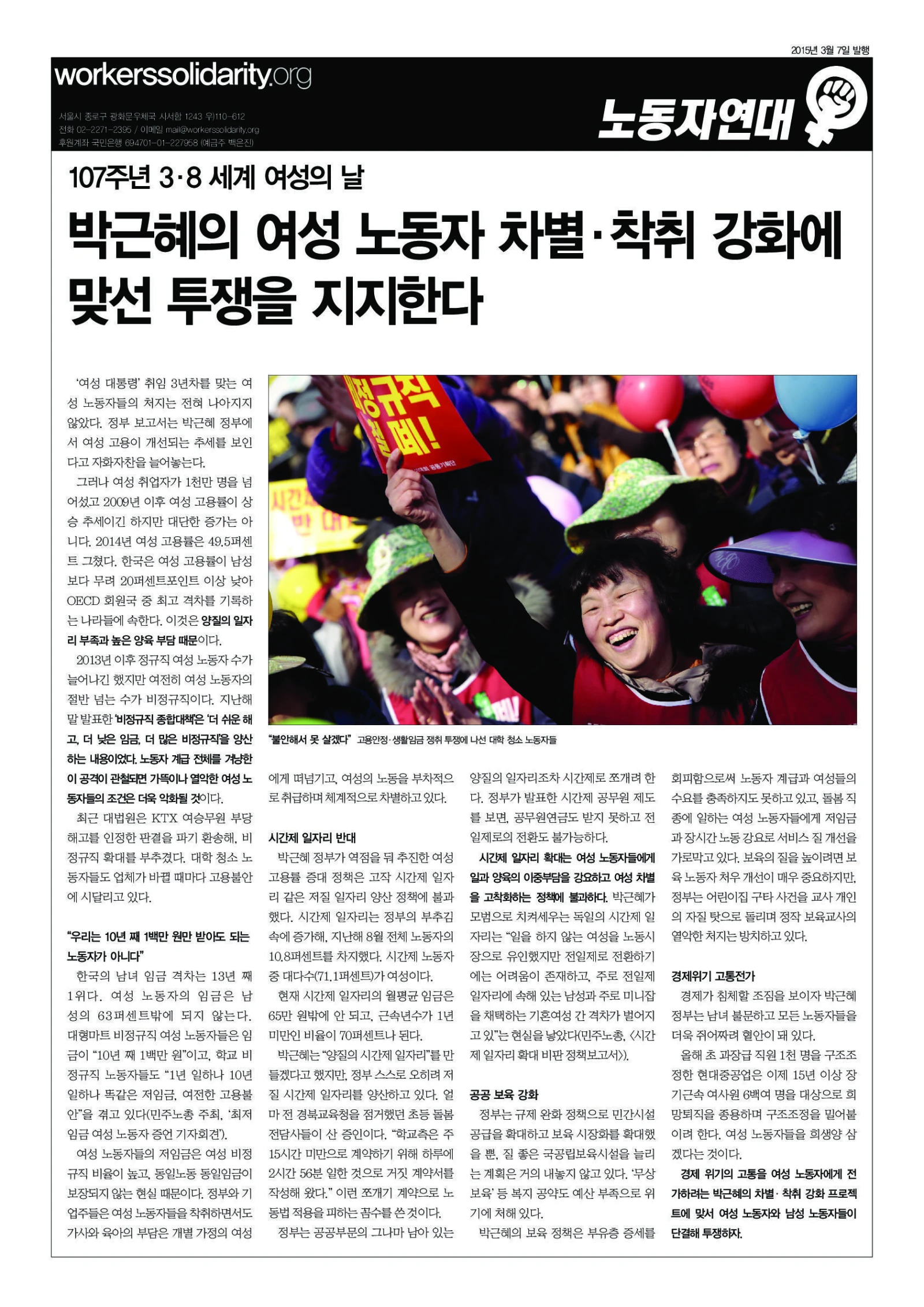 박근혜의 여성 노동자 차별·착취 강화에 맞선 투쟁을 지지한다
