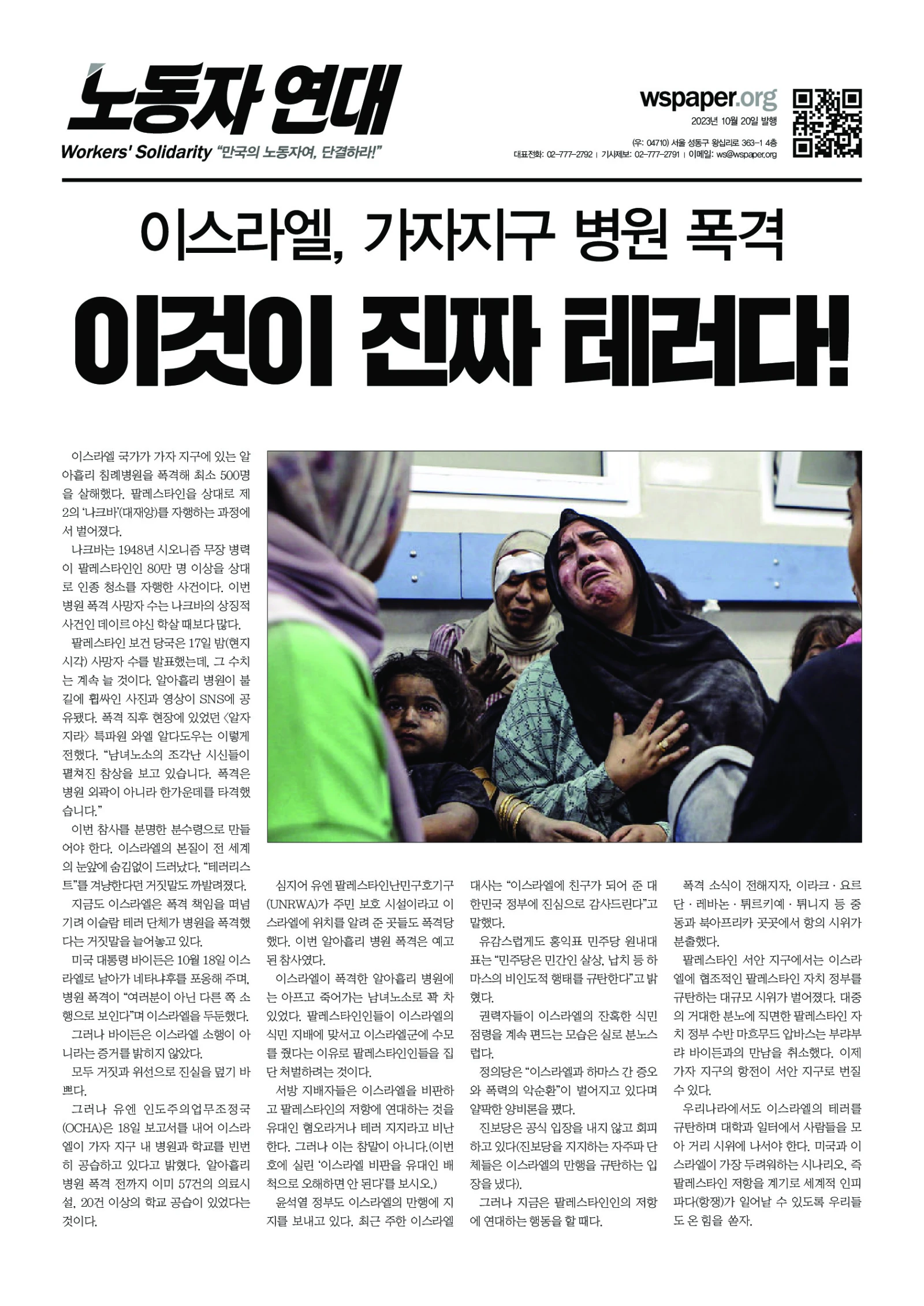 2023년 10월 20일 이태원 팔레스타인 연대 집회에서 배포한 리플릿입니다.