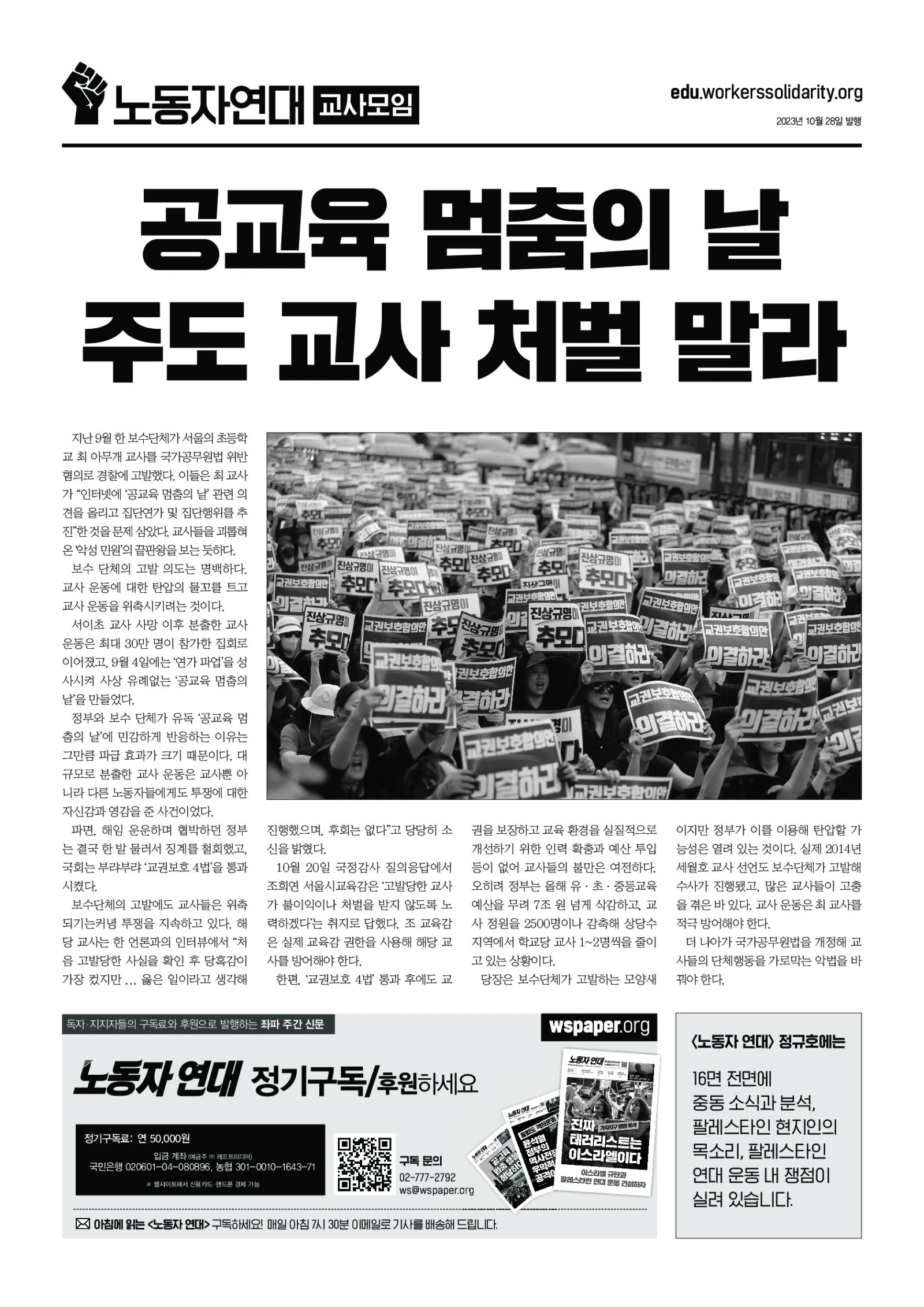 2023년 10월 28일 교사 집회에서 배포한 리플릿입니다.