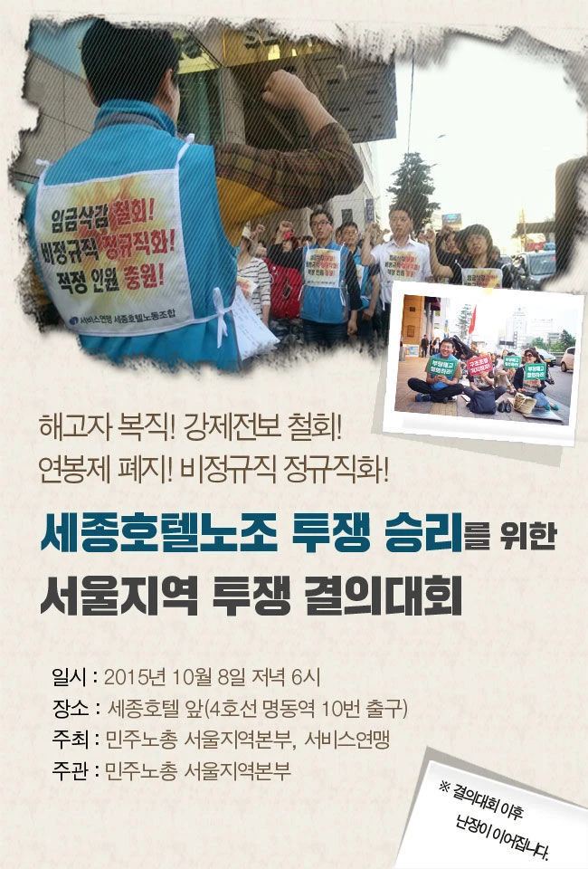 세종호텔노조 투쟁 승리를 위한 서울지역 투쟁 결의대회