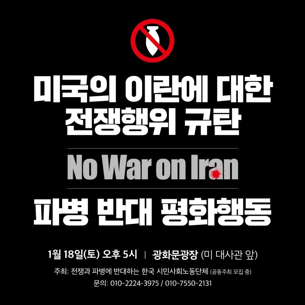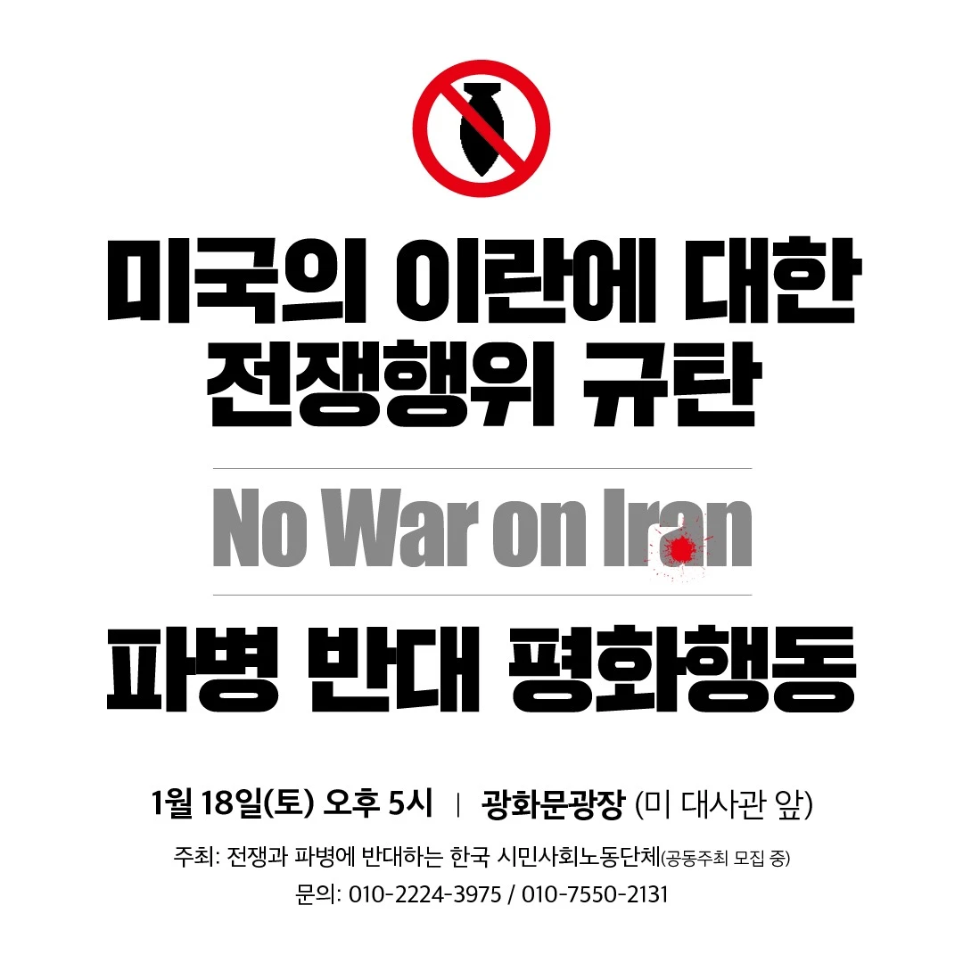 미국의 이란에 대한 전쟁행위 규탄 No War on Iran 파병 반대 평화행동