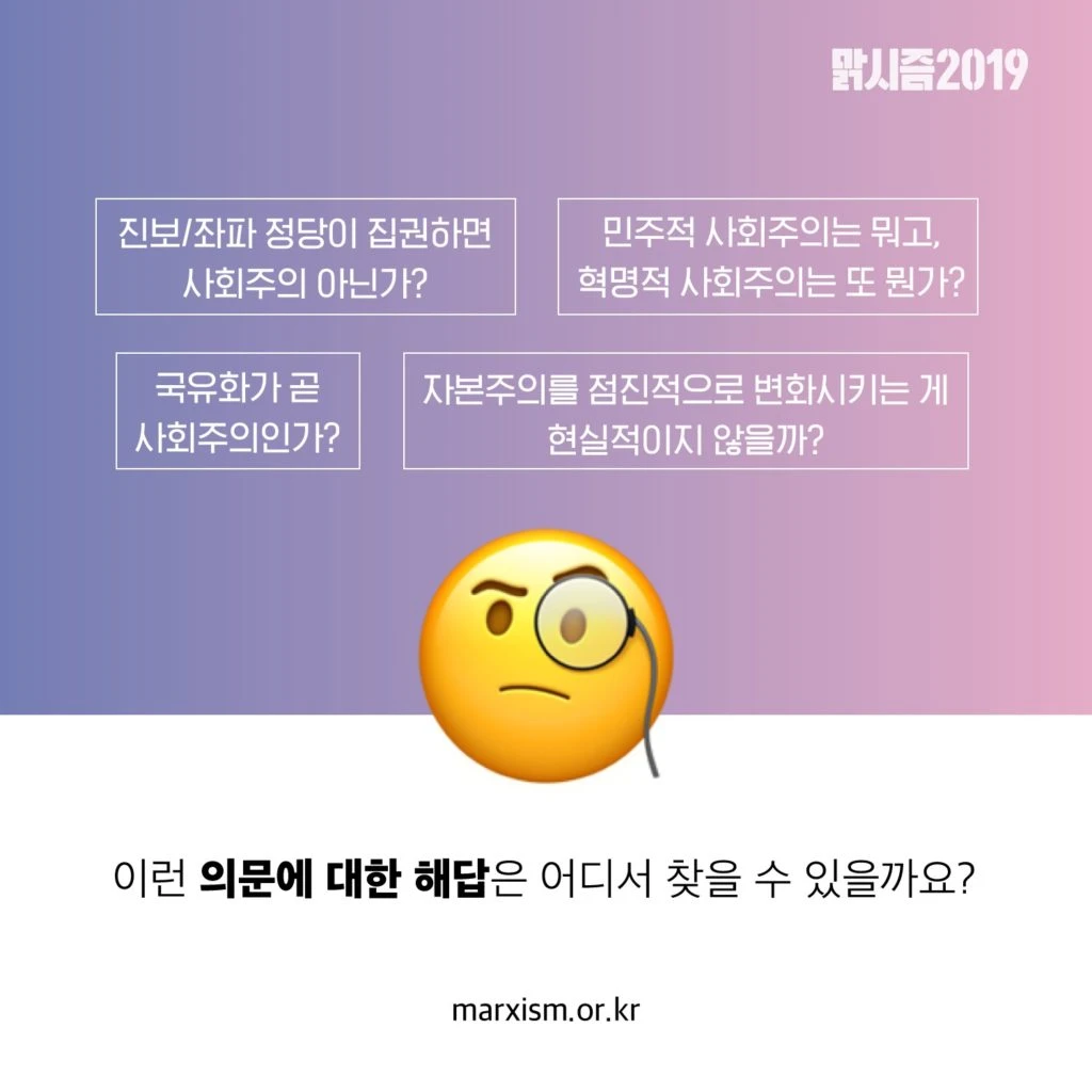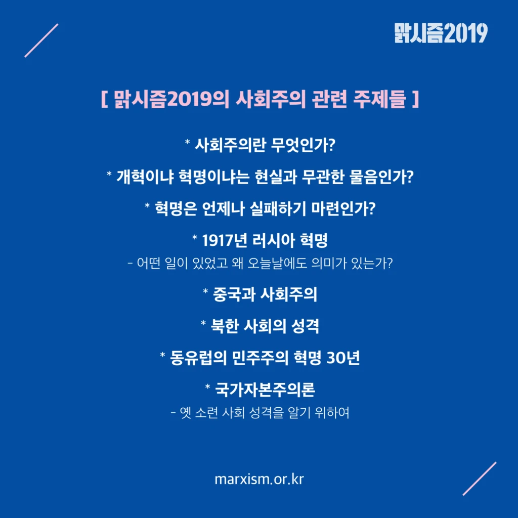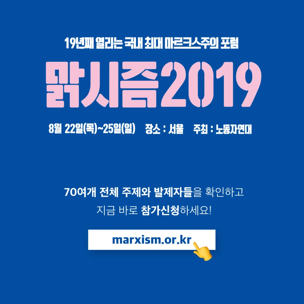 맑시즘2019에서 사회주의에 대한 중요한 물음들을 파헤칩니다. 함께 토론합시다.