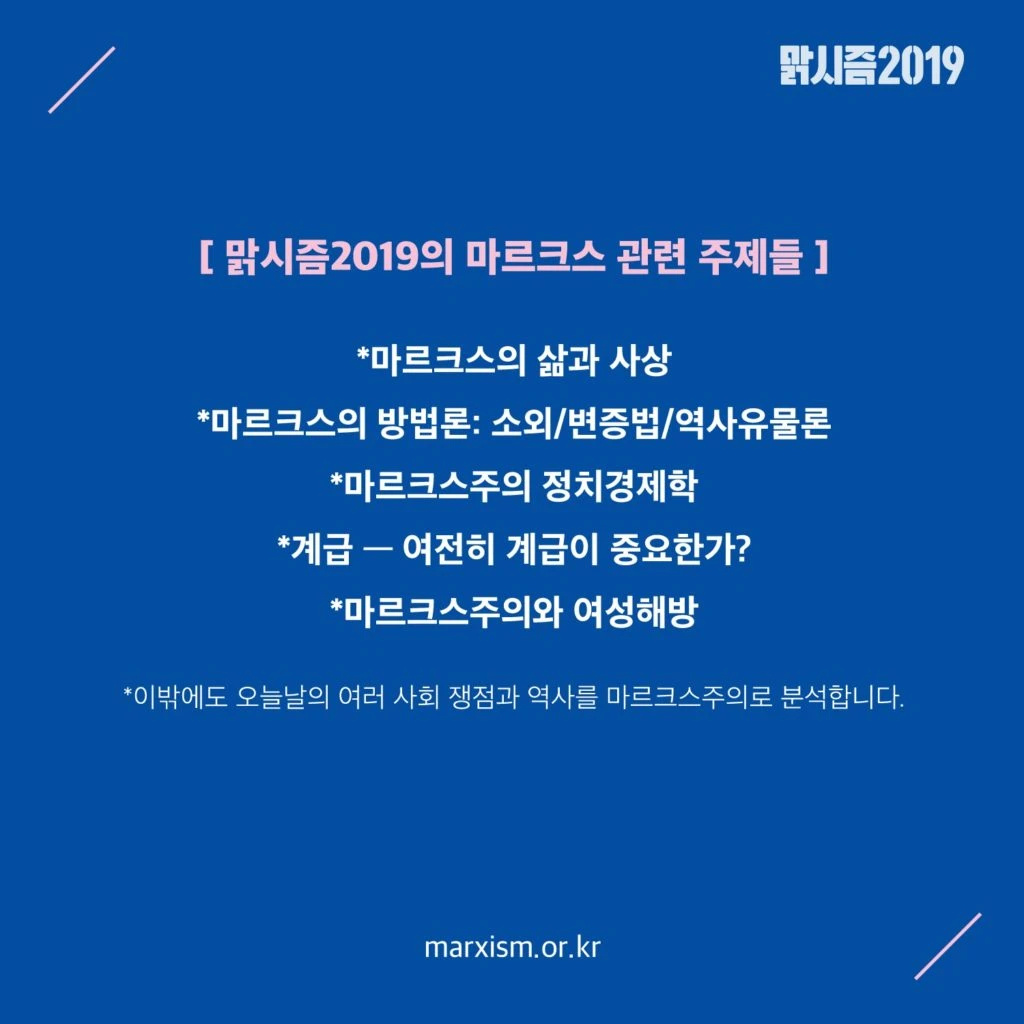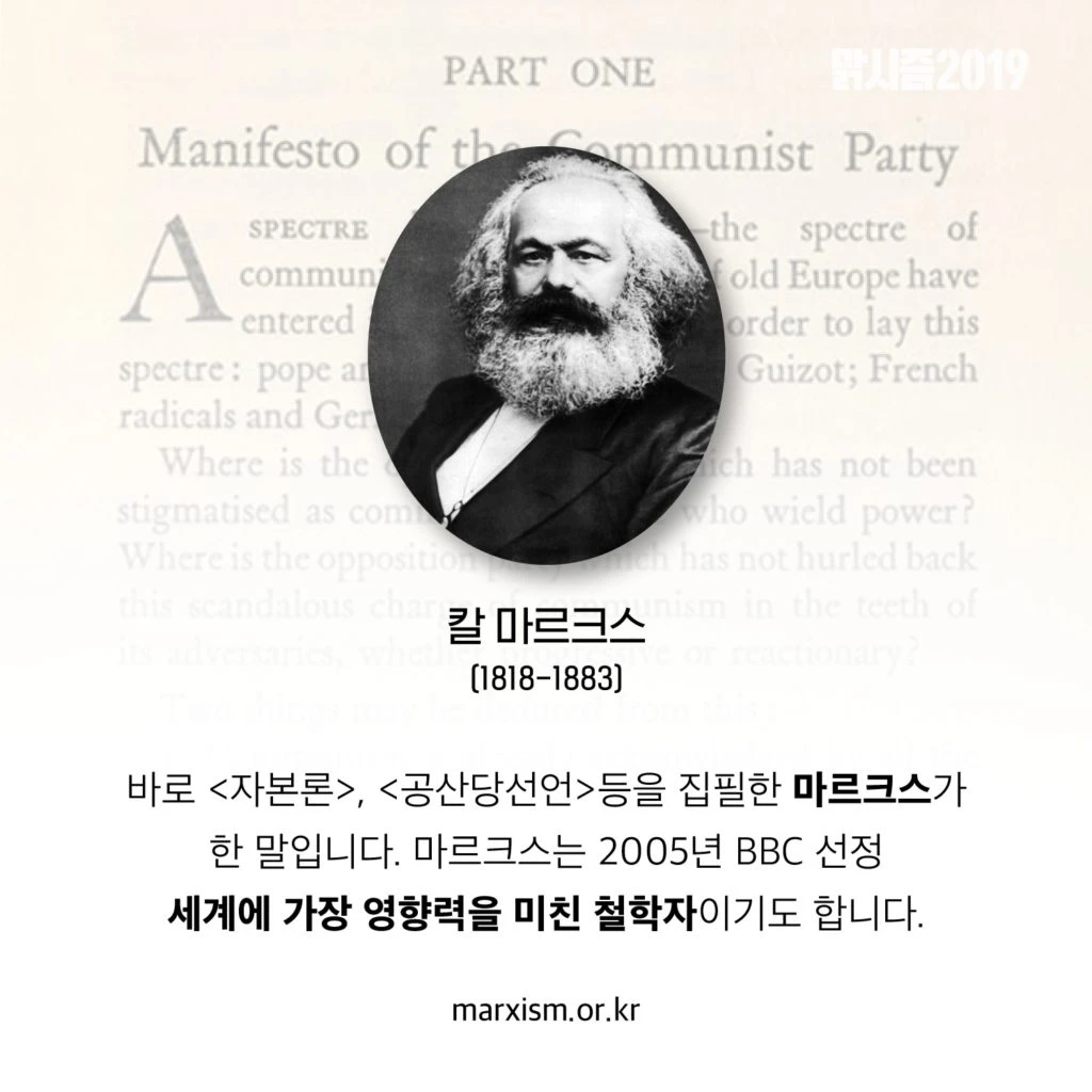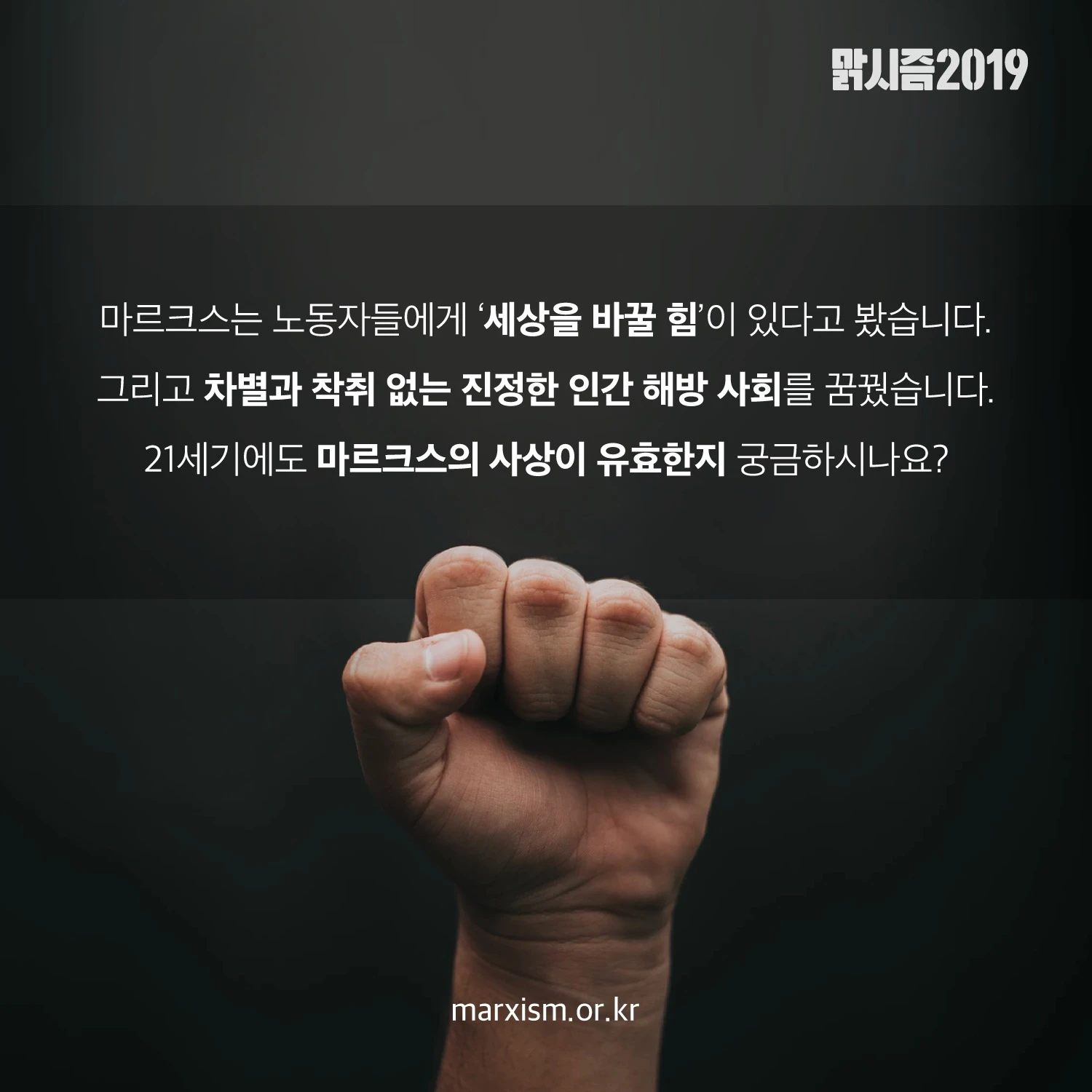 19년 전통의 한국 최대 마르크스주의 축제 맑시즘2019에서 마르크스의 삶과 사상을 만나보세요!