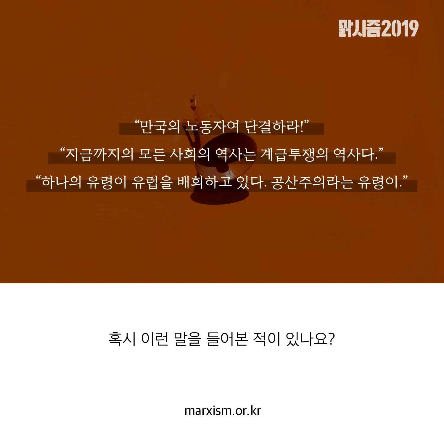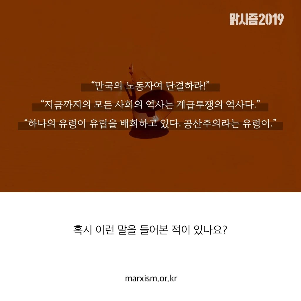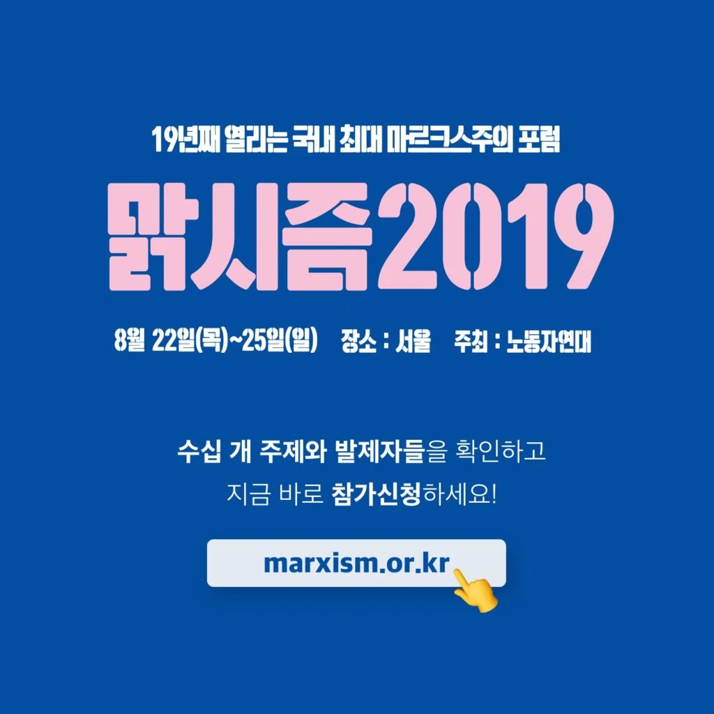 19년 전통의 한국 최대 마르크스주의 축제 맑시즘2019에서 마르크스의 삶과 사상을 만나보세요!