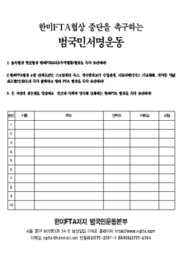 한미FTA 저지 범국민 서명운동 용지