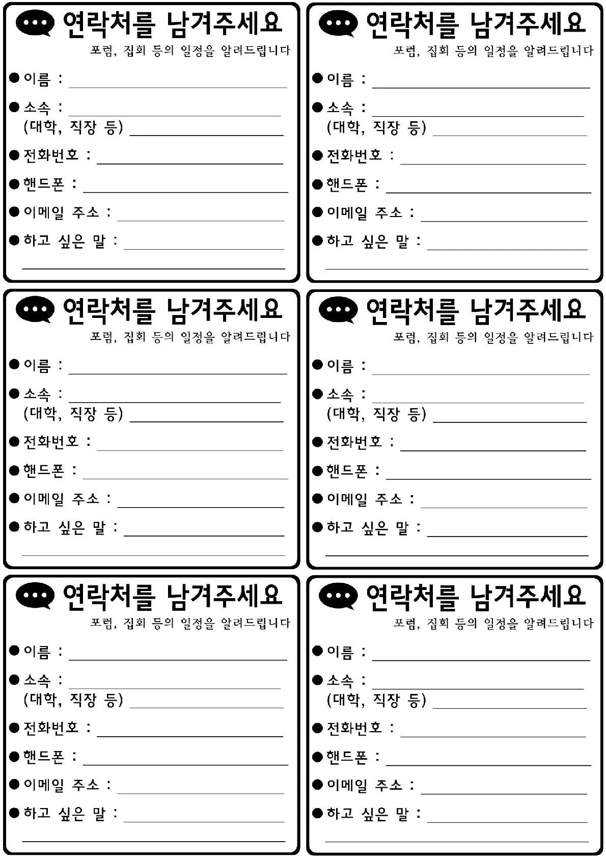 가판이나 캠페인 시 독자들의 연락처를 적을 수 있는 양식입니다.