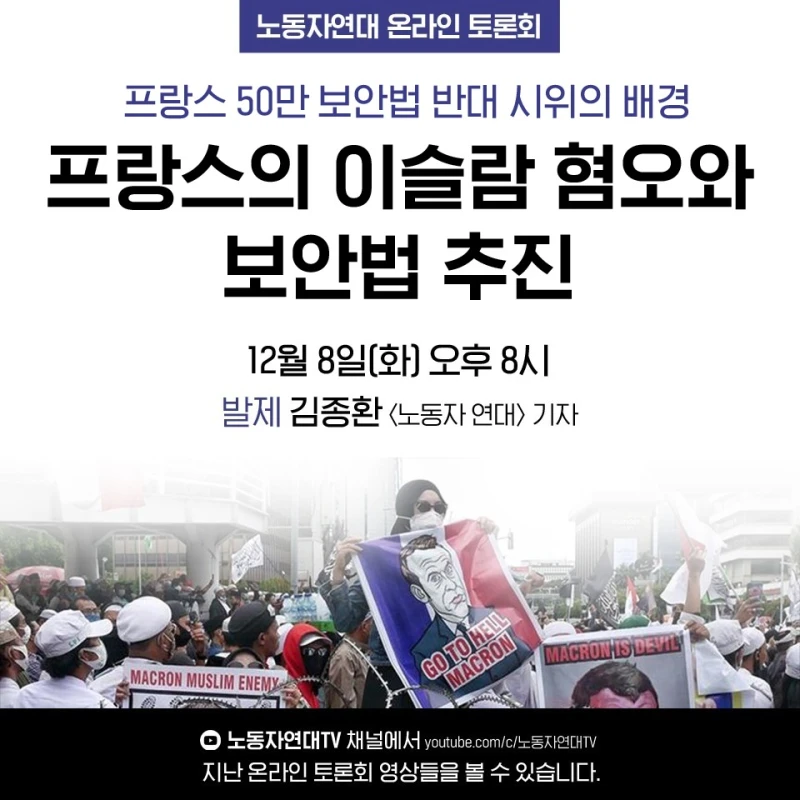 [노동자연대 온라인 토론회 ] 프랑스 50만 보안법 반대 시위의 배경 프랑스의 이슬람 혐오와 보안법 추진