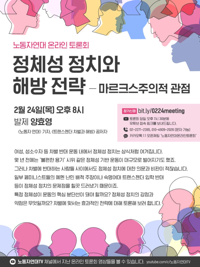 특정 정체성이 운동의 핵심 분단선이 돼야 할까요? 정체성 정치의 강점과 약점은 무엇일까요? 차별에 맞서는 효과적인 전략에 대해 토론해 보려 합니다.