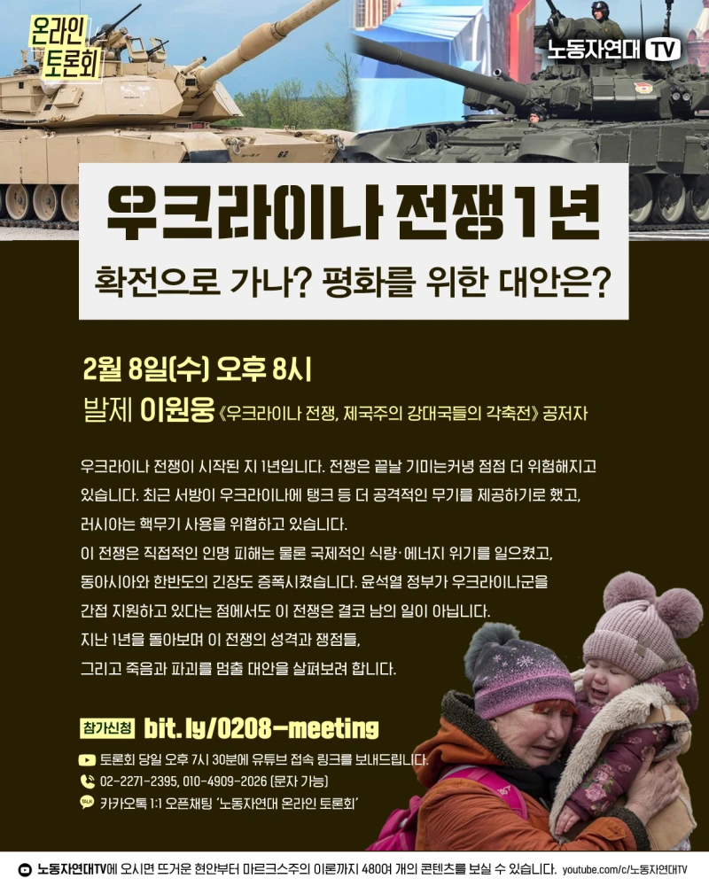 이 전쟁은 직접적인 인명 피해는 물론 국제적인 식량·에너지 위기를 일으켰고, 동아시아와 한반도의 긴장도 증폭시켰습니다. 윤석열 정부가 우크라이나군을 간접 지원하고 있다는 점에서도 이 전쟁은 결코 남의 일이 아닙니다.