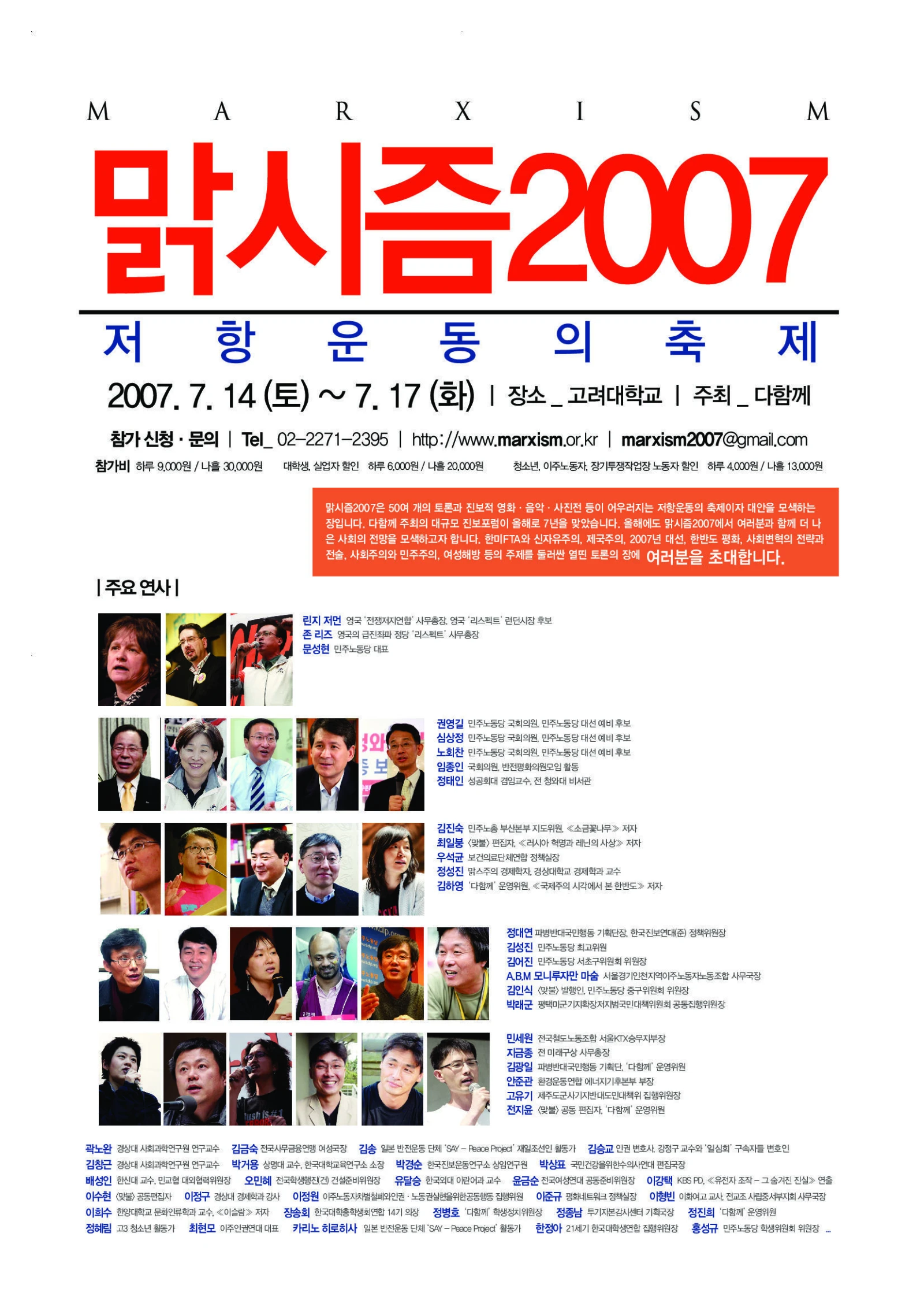 6월 27에 발행된 맑시즘2007 4페이지 홍보물