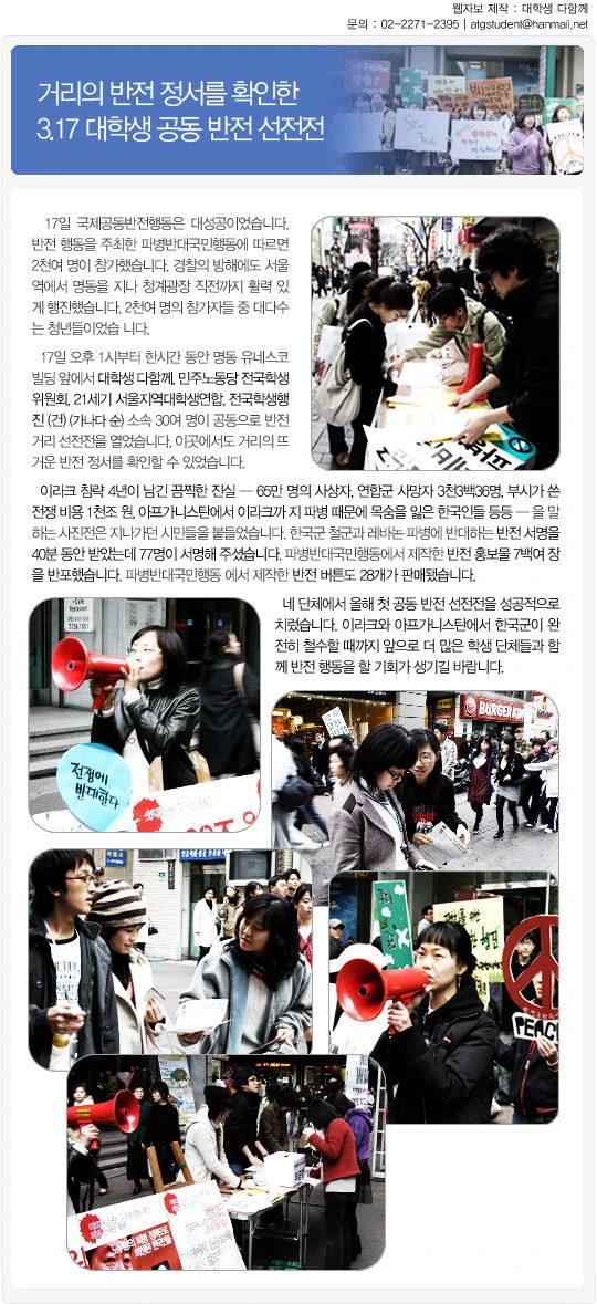 거리의 반전 정서를 확인한 3.17 대학생 공동 반전 선전전(3.17)