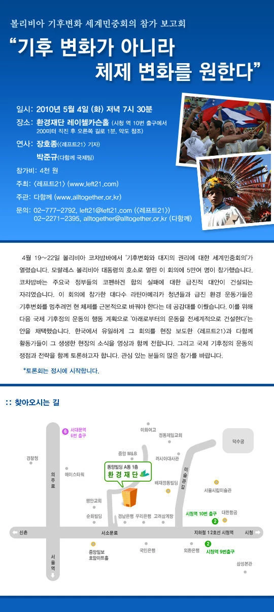볼리비아 기후변화 세계민중회의 참가 보고회