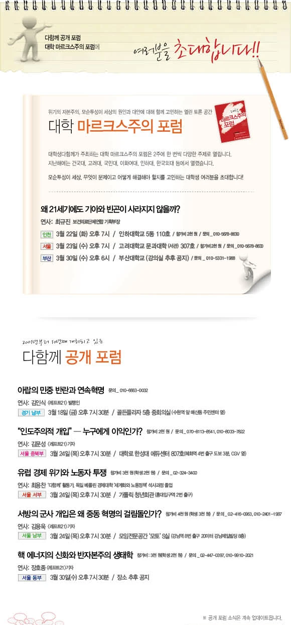 3월 셋째 주 다함께 공개 포럼/대학 마르크스주의 포럼
