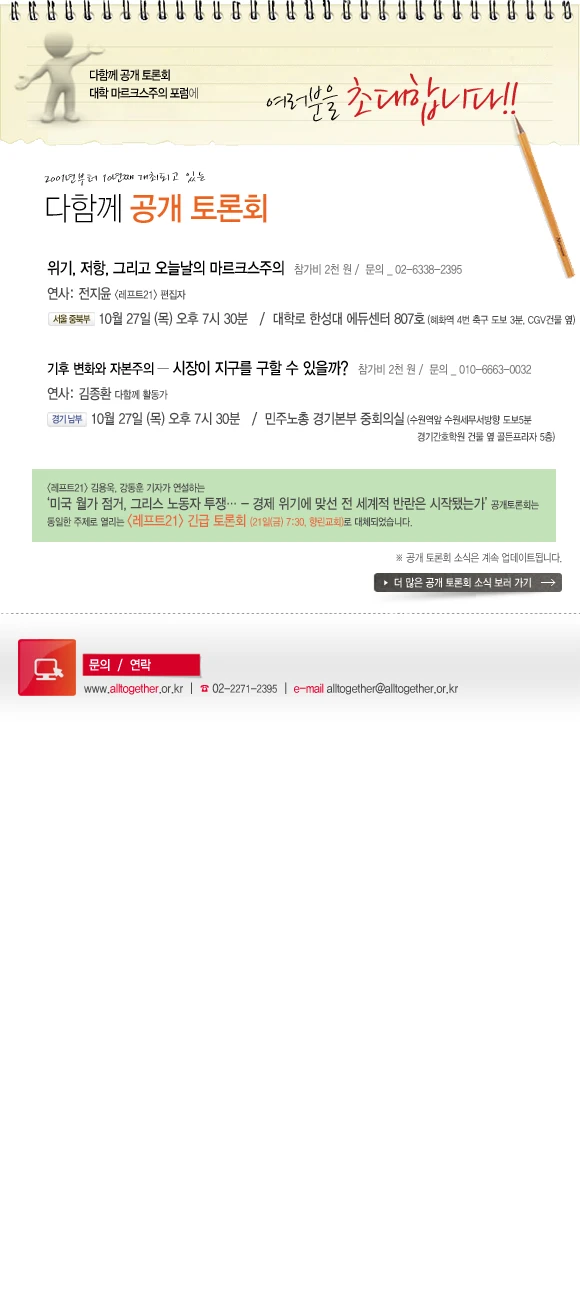 〈table id="__01" width="580" height="1421" border="0" cellpadding="0" cellspacing="0"〉 〈tr〉 〈td〉 〈a href="http://www.marxism.or.kr/always/" _cke_saved_href="http://www.marxism.or.kr/always/" target="_blank"〉 〈img src="http://alltogether.or.kr/publicity/2011/2011.10.11_130457_20111011_openforum/images/20111011_openforum_01.png" width="580" height="1312" border="0" alt=""〉〈/a〉〈/td〉 〈/tr〉 〈tr〉 〈td〉 〈a href="http://alltogether.or.kr/" target="_blank"〉 〈img src="http://alltogether.or.kr/publicity/2011/2011.10.11_130457_20111011_openforum/images/20111011_openforum_02.png" width="580" height="108" border="0" alt=""〉〈/a〉〈/td〉 〈/tr〉 〈tr〉 〈td〉 〈img src="http://alltogether.or.kr/publicity/2011/2011.10.11_130457_20111011_openforum/images/20111011_openforum_03.png" width="580" height="1" alt=""〉〈/td〉 〈/tr〉 〈/table〉