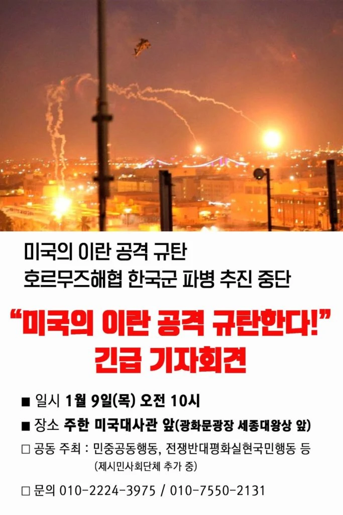 “미국의 이란 공격 반대한다!” 긴급 기자회견