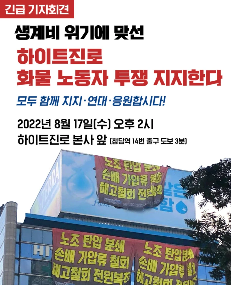 하이트진로 화물 노동자 투쟁 지지한다