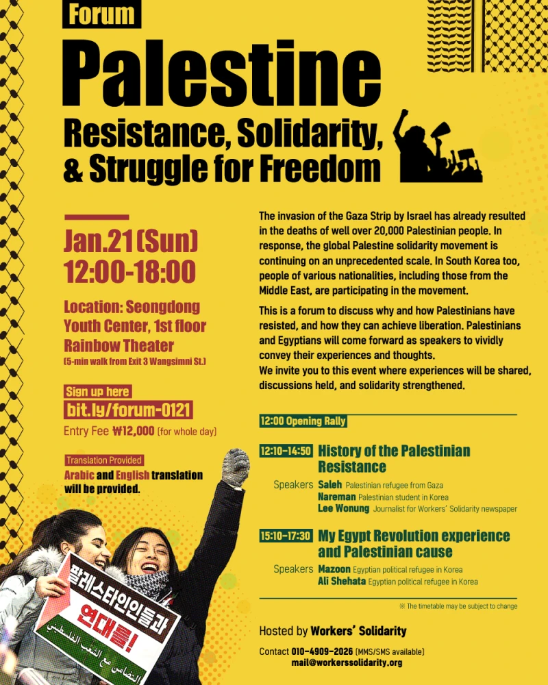 The invasion of the Gaza Strip by Israel has already resulted in the deaths of well over 20,000 Palestinian people. In response, the global Palestine solidarity movement is continuing on an unprecedented scale. In South Korea too, people of various nationalities, including those from the Middle East, are participating in the movement.