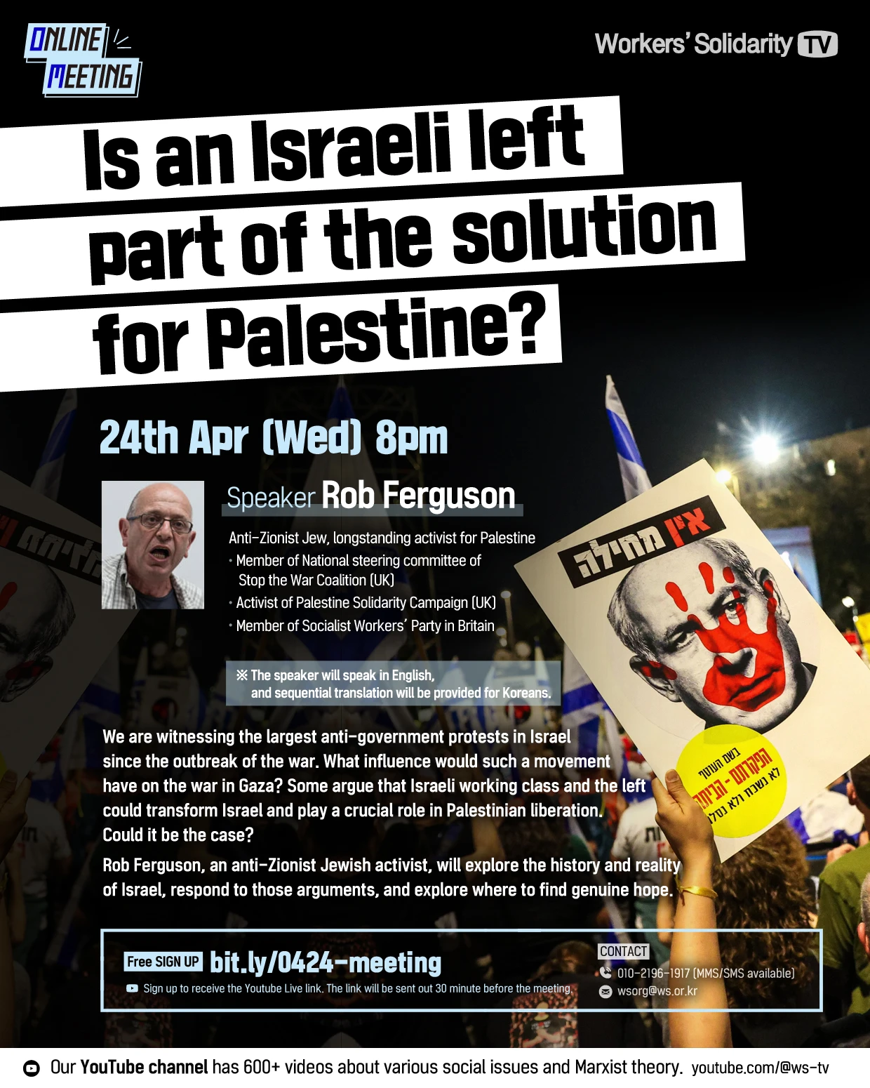 시온주의에 반대하는 유대인 활동가인 롭 퍼거슨이 이스라엘의 역사와 현실을 살펴보며 이런 주장에 답하고 변화를 가져올 희망이 어디에 있는지 다룰 것입니다.