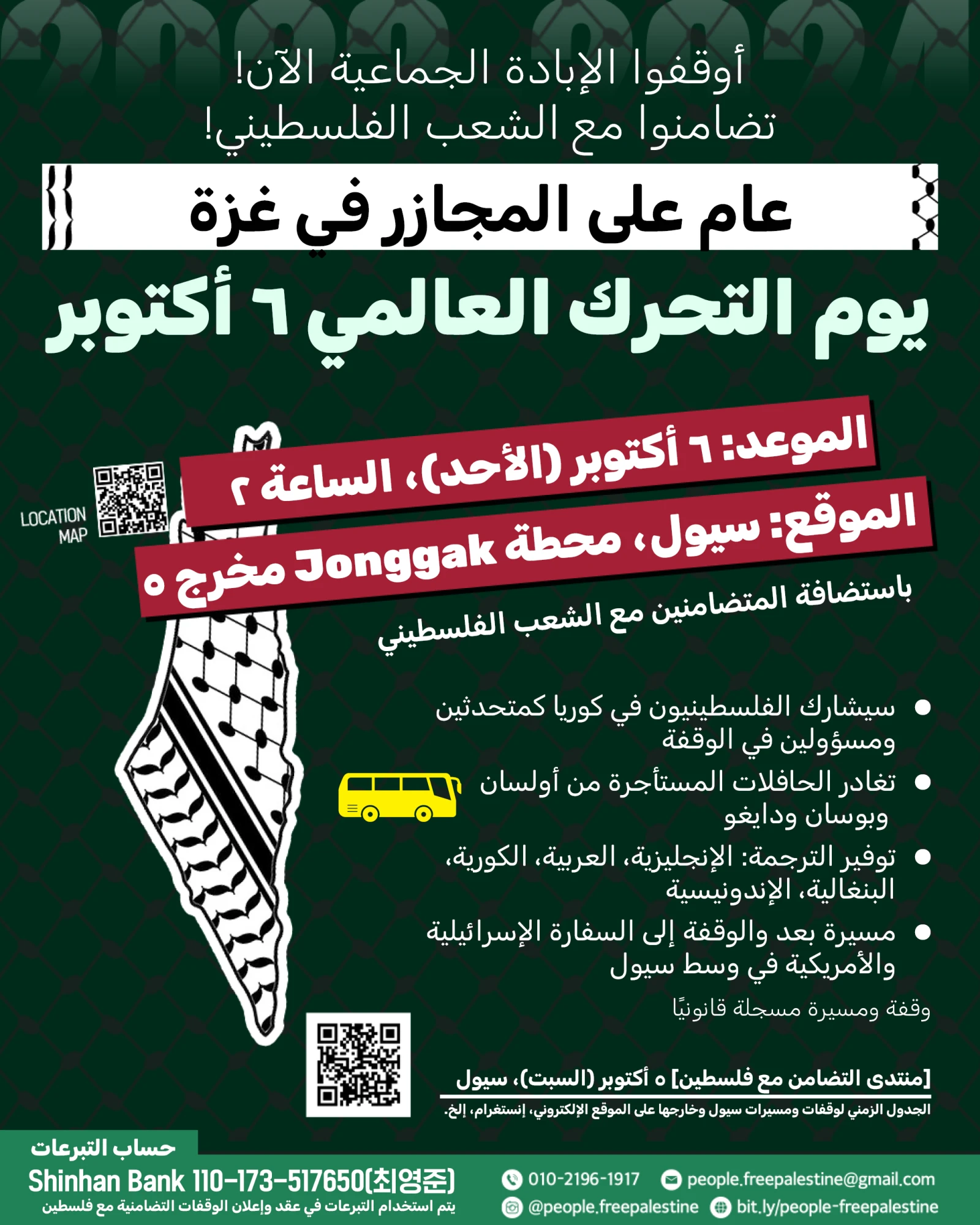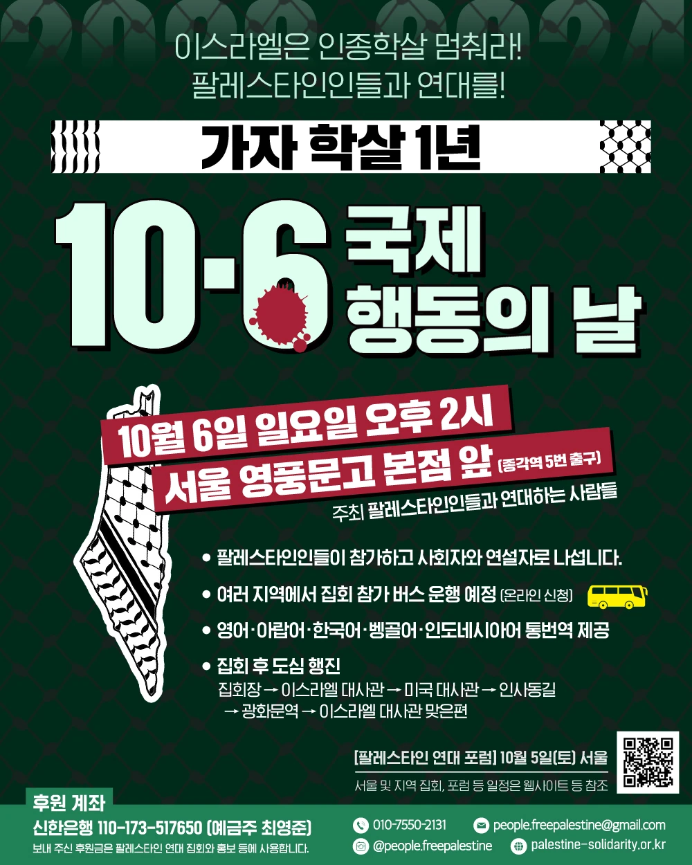 📌[팔레스타인 연대 포럼] 10월 5일(토), 서울