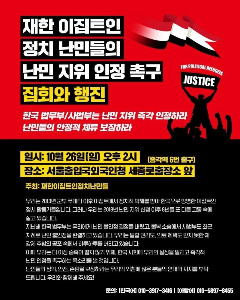 재한 이집트인 정치 난민들의 난민 지위 인정 촉구 집회와 행진