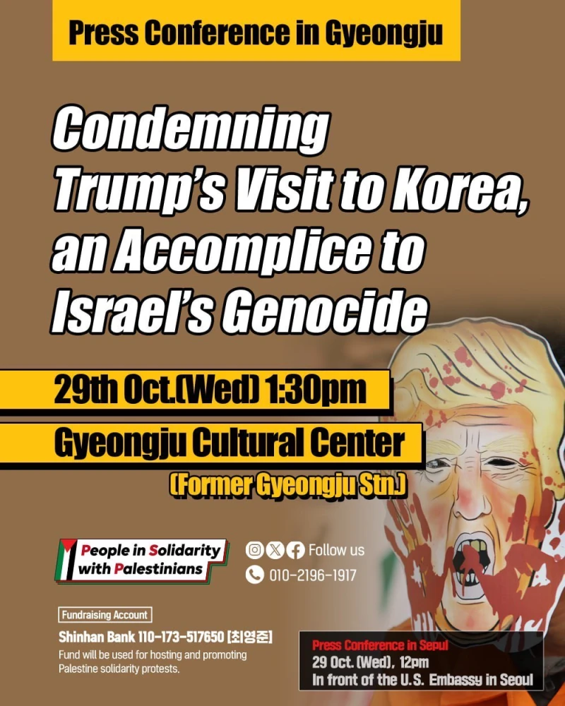 Condemning Trump’s Visit to Korea, an Accomplice to Israel’s Genocide!