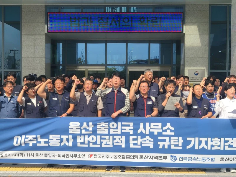 9월 30일 울산 출입국관리소 앞에서 이 단속에 항의하는 기자회견이 열렸다. 금속노조 울산지부, 민주노총 울산본부, 울산이주민센터 등 70명이 참가했다.