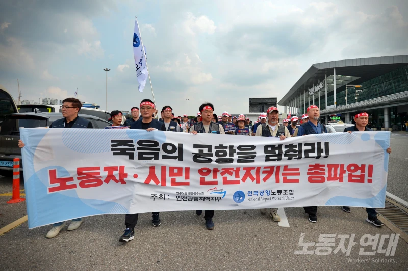 이 노동자들이 “죽음의 공항을 멈춰라”고 외치는 이유는 노동자들의 열악한 처지가 지난해 말 무안공항 참사와 같은 대형 사고 가능성을 키울 뿐 아니라 노동자들의 과로사로도 이어지고 있기 때문이다. 인천공항에서 올해에만 노동자 5명이 뇌출혈, 추락사 등 산재로 목숨을 잃었다.
