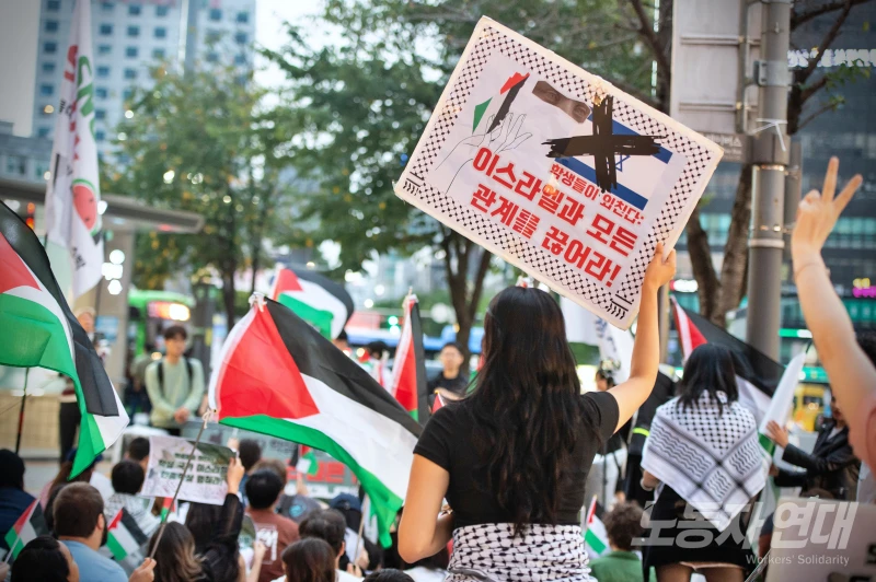 가자 전쟁 2년을 엿새 앞둔 10월 1일, 서울 신촌에서 대학생들이 이스라엘의 인종 학살을 규탄하고, 이스라엘과의 교류 단절을 촉구하는 집회를 열었다. 10월 12일에 열릴 ‘팔레스타인인들과 연대하는 사람들’의 ‘가자 학살 2년 전국 집중 행동의 날’ 집회를 예열하는 것이기도 했다.