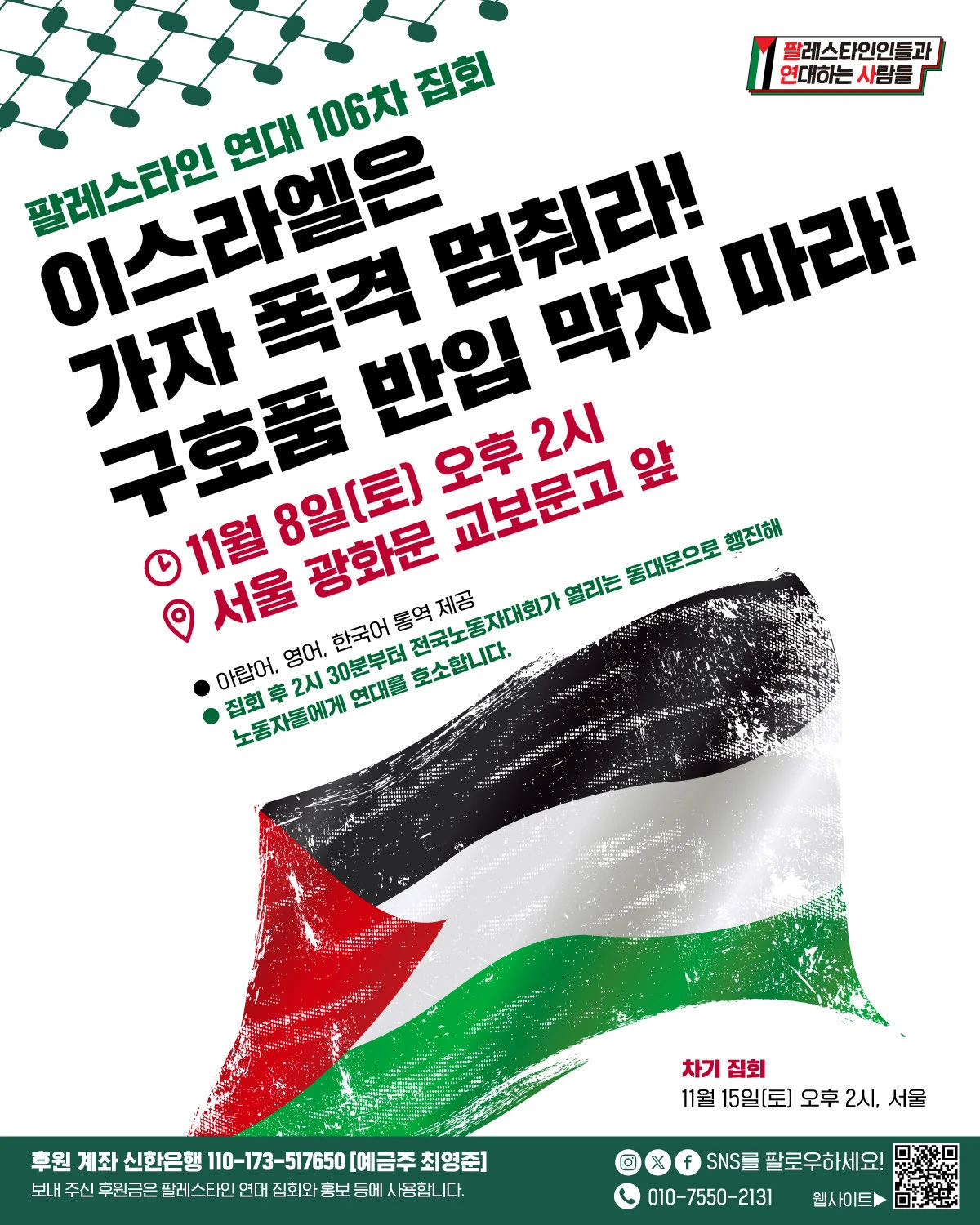 ‘팔레스타인인들과 연대하는 사람들’ 103차 서울 집회:
